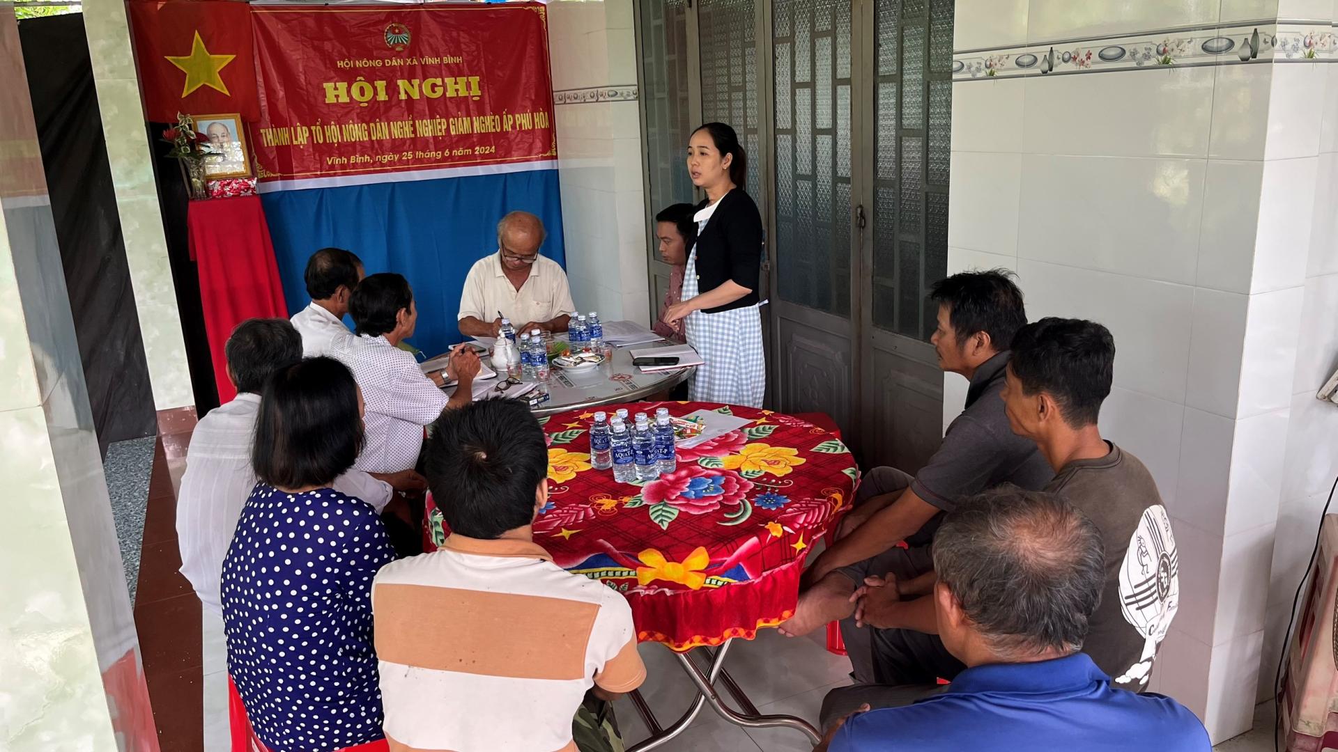 Ngày 26/6/2024, Hội Nông dân xã Vĩnh Bình đã phối hợp với hệ thống chính trị ấp và Chi Hội Nông dân ấp thành lập Hội Nông dân nghề nghiệp giảm nghèo ấp Phú Hoà, địa điểm tại nhà Ông. Trần Quang Tài, tại Hội nghị đã thông qua Chương trình, Quyết định thành lập, Quy chế hoạt động và danh sách hội viên. Tổ hội Nông dân nghề nghiệp giảm nghèo ấp Phú Hoà có 10 thành viên. Đây là nơi để bà con nông dân tham gia sinh hoạt và tiếp thu được khoa học kỹ thuật, trao đổi kinh nghiệm, giúp nhau phát triển kinh tế; đồng thời là nơi bà con nông dân tiếp cận được chủ trương của Đảng, Nhà nước và Hội Nông dân các cấp để áp dụng vào sản xuất đạt chất lượng đồng loạt, bán sản phẩm nông nghiệp ra thị trường với giá ổn định, để nâng cao chất lượng đời sống gia đình.